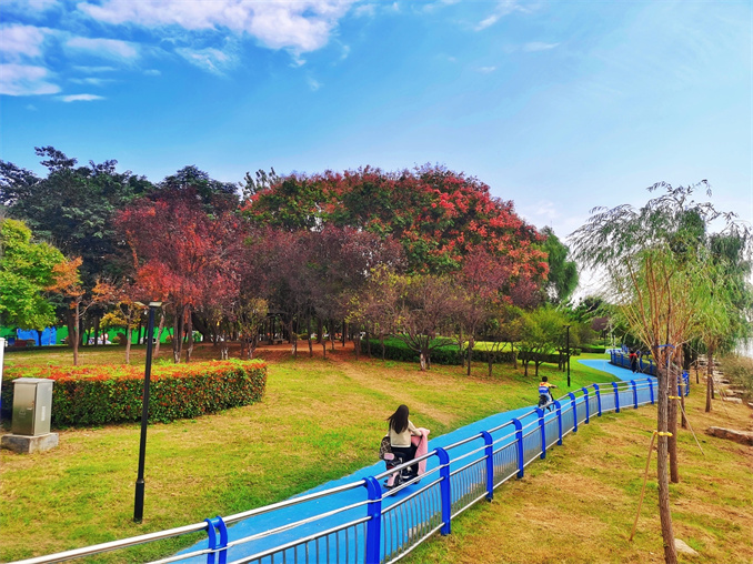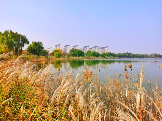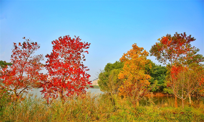 晚秋時(shí)節(jié),河南省商丘市虞城縣城區(qū)公園里景色如畫,色彩斑斕的花木,波光粼粼的湖水,在藍(lán)天白云的映襯下格外美麗。