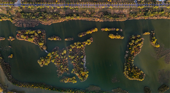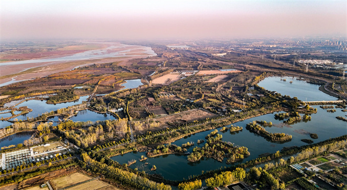 11月6日,鄭州黃河灘濕地公園秋色絢爛。