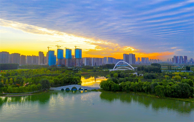 圖為鄭州濱河國際新城蝶湖秋景。 王柳 攝