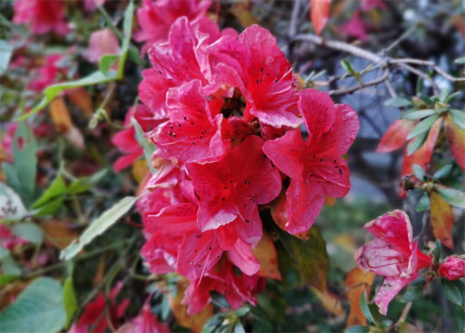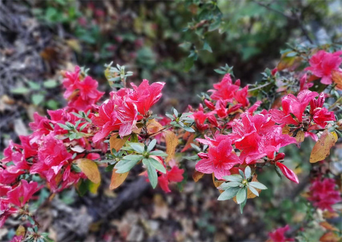 立冬節(jié)氣已至,但連續(xù)多日20℃左右的氣溫,加上晴朗的天氣,似乎讓地處河南省伏牛山腹地的寶天曼自然保護(hù)區(qū)內(nèi)的映山紅產(chǎn)生了“錯(cuò)覺(jué)”,恍若身處春日,再度綻放紅顏。