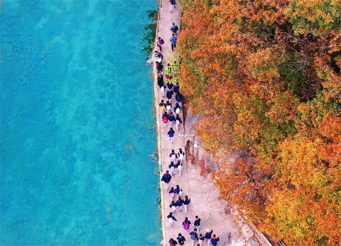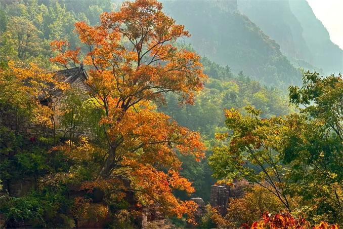 峽谷中或綠或黃或紅的層林,肆意揮灑著絢麗的色彩,如迸發(fā)的煙火在風(fēng)中綻放,點(diǎn)燃了初冬。
