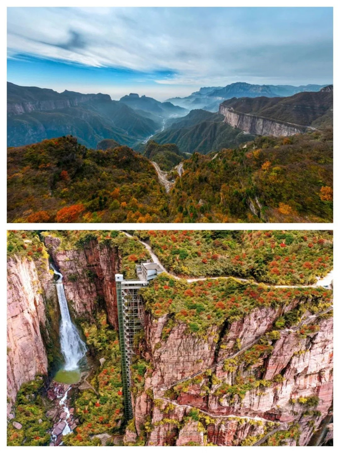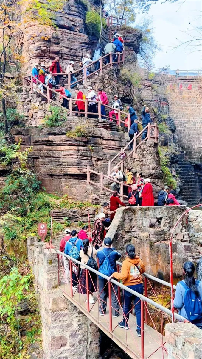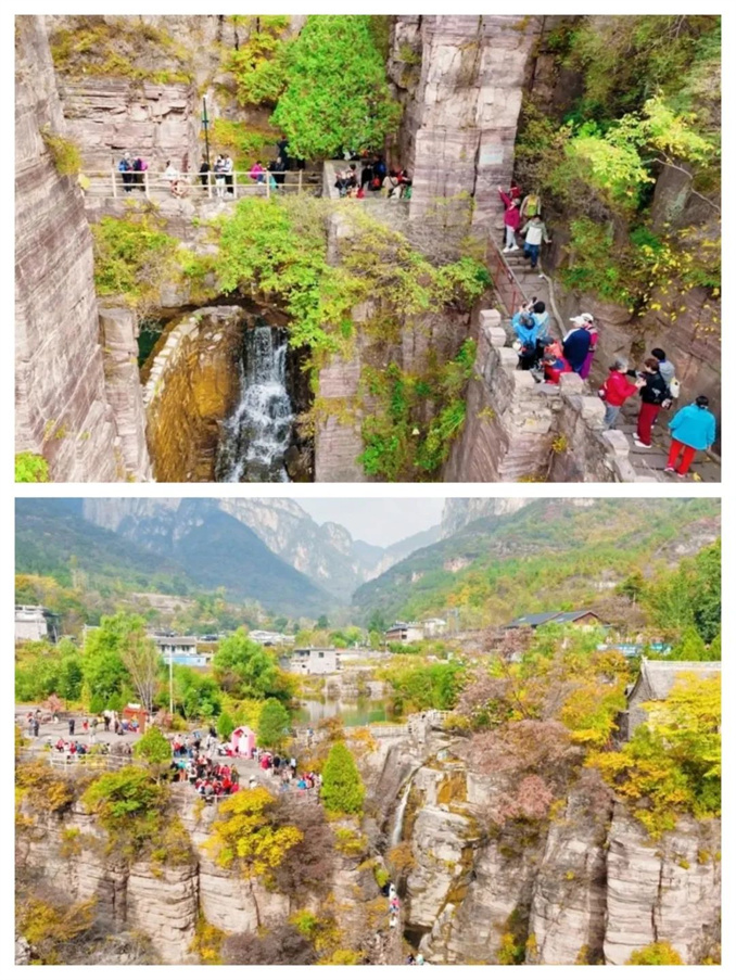 此時的新鄉(xiāng)南太行,秋色依舊蓬勃生姿,黃色、橙色、紅色交相輝映,絢麗多彩。山川壯麗,峽谷幽深,每一處都是大自然的杰作。