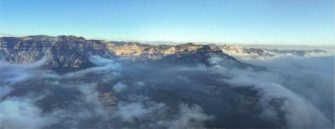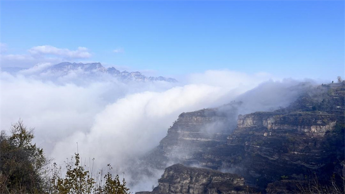 近日,河南林州太行大峽谷初冬云霧繚繞,山谷若隱若現(xiàn),勾勒出一幅冬日太行自然畫(huà)卷。