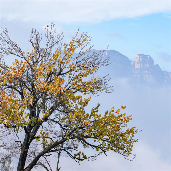 與深冬不同的是初冬的雪是彩色的,因為山上草木皆在,樹葉未枯,突如其來的降雪讓山頭像刮刮樂一樣帶給您驚喜,各種色彩、溫度、天氣交織在一起,說太行大峽谷在這個時候是變色龍也不為過。