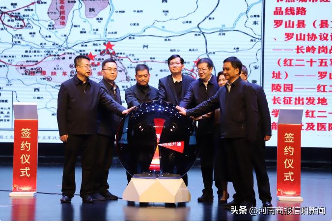 11月16日,在紅二十五軍長(zhǎng)征出發(fā)90周年紀(jì)念大會(huì)上,成功舉辦了紅二十五軍長(zhǎng)征沿線紅色文旅聯(lián)盟簽約儀式,河南省羅山縣、方城縣、盧氏縣,湖北省英山縣,陜西省丹鳳縣、延川縣,甘肅省涇川縣、會(huì)寧縣等8個(gè)縣代表上臺(tái)集中簽約,開(kāi)啟了紅二十五軍長(zhǎng)征沿線紅色文旅高質(zhì)量發(fā)展的篇章。