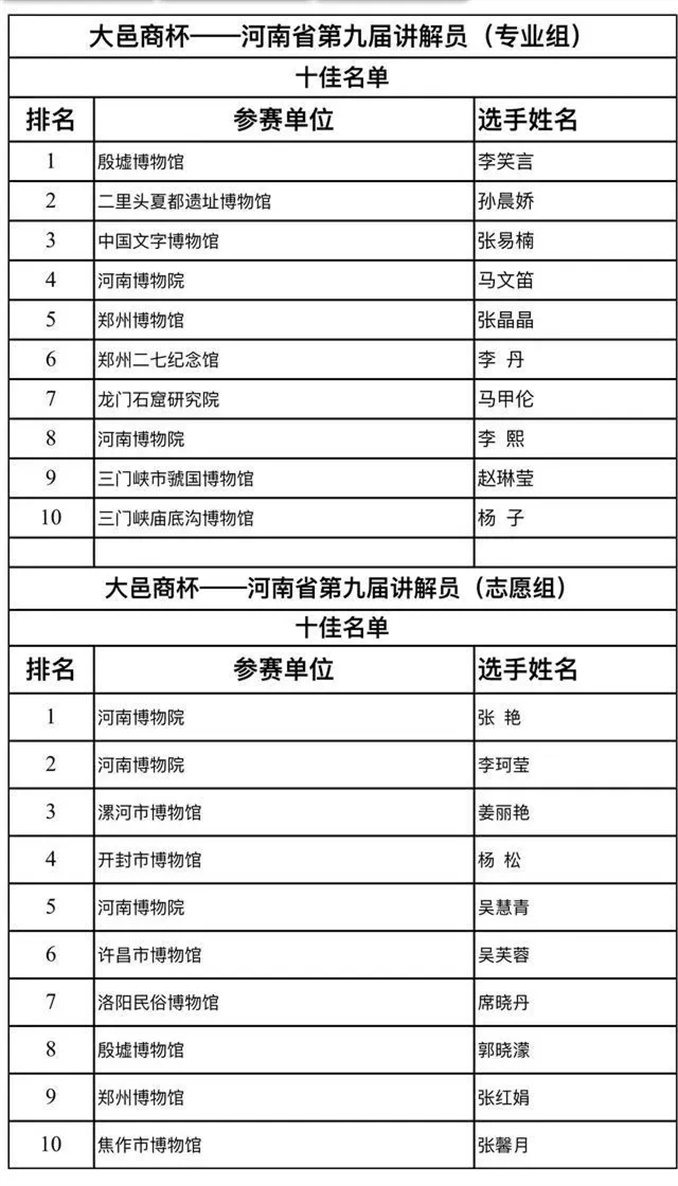 博物館承擔著知識傳播和公共教育的重要使命,高質(zhì)量的講解服務能夠讓觀眾深刻理解文物背后的歷史思想和文化價值,優(yōu)秀的講解員隊伍是博物館事業(yè)實現(xiàn)高質(zhì)量發(fā)展的有力支撐。河南省文物局高度重視講解隊伍建設,自1992年以來,每四年一屆的講解技能展示推介活動,為全省講解員搭建了展示自我、交流互鑒的學習平臺,檢驗了全省講解隊伍的建設成果,推動了講解服務能力的整體提升。本屆活動啟動以來,共計450余名講解員從全省近6000名講解員中脫穎而出參加推介。在現(xiàn)場推介環(huán)節(jié),共推介出“中原優(yōu)秀傳統(tǒng)文化宣講員”142名,其中專業(yè)組和志愿組“十佳講解員”各10名,“優(yōu)秀講解員”50名。不斷壯大的講解員隊伍,必將為塑造“行走河南,讀懂中國”品牌,保護傳承中華優(yōu)秀傳統(tǒng)文化做出新貢獻。