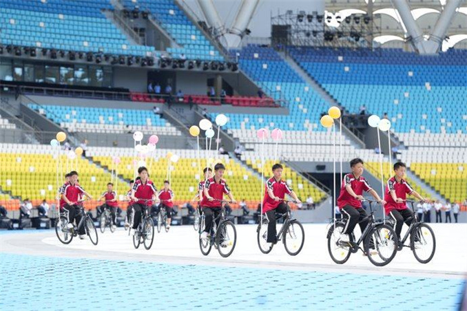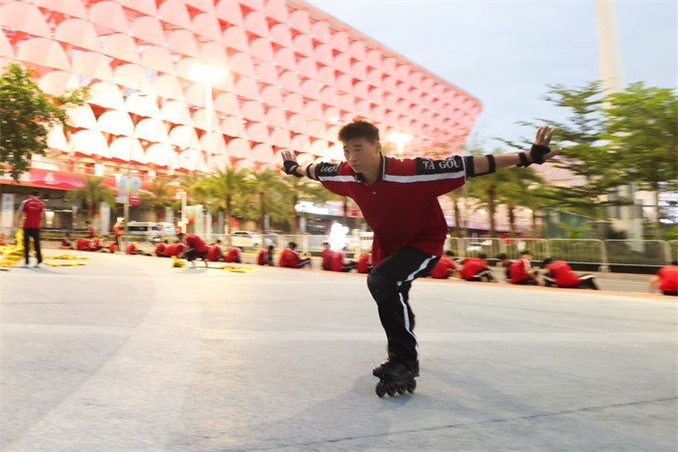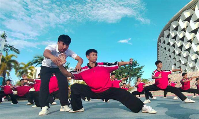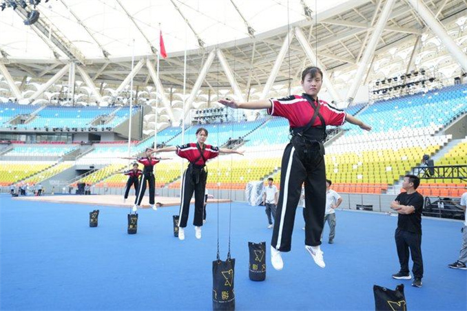 本屆運動會開幕式分為出場儀式和文體展演兩個環(huán)節(jié),總時長約為兩小時。其中文體展演有上篇《天下一脈》、中篇《中華一體》、下篇《團結(jié)一心》三個篇章共八個節(jié)目。塔溝武校200名學員10月7日抵達三亞后,經(jīng)歷了一個多月的精心排練,在之前的聯(lián)排和彩排中均表現(xiàn)優(yōu)異,多次受到導演和總導演的表揚,并順利完成了最后一次彩排。“感覺今晚發(fā)揮得挺不錯,畢竟我們已經(jīng)練了一個多月,過程有艱辛有快樂,我們今晚上場后,首先聽到的就是現(xiàn)場觀眾的驚嘆聲和歡呼聲,心里特別興奮,特別滿足,就告誡自己一定要把握好每一個細節(jié),絕對不能出現(xiàn)失誤。”飾演魔鬼魚的塔溝武校功夫小子瞿詩楊,彩排結(jié)束后高興地說道。