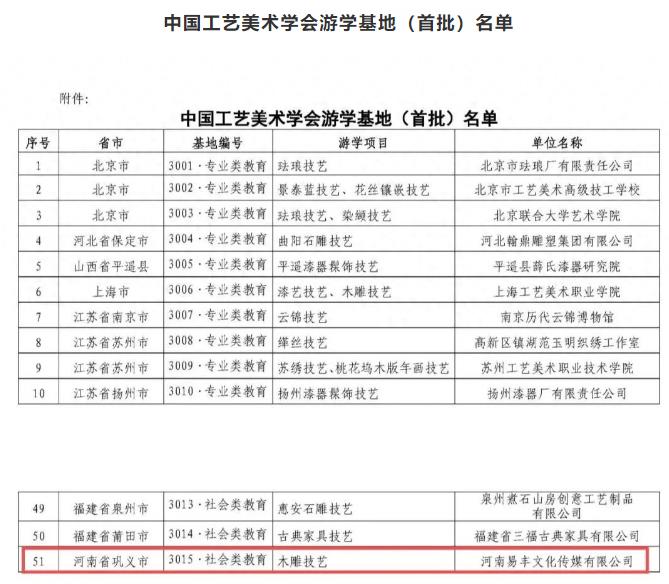 中國工藝美術(shù)學(xué)會(huì)游學(xué)基地(首批)名單