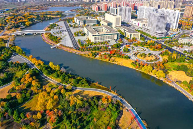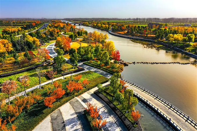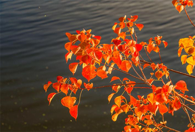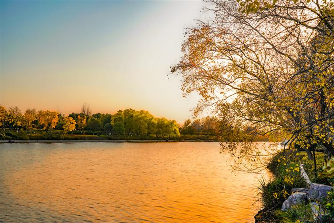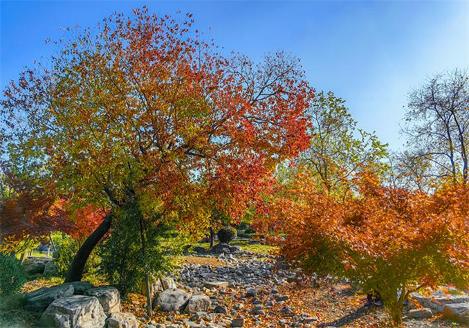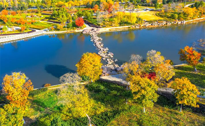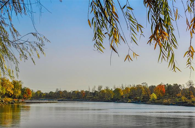 初冬時節(jié),河南省駐馬店市遂平縣玉帶公園天空湛藍(lán),陽光明媚,火紅的烏桕、金黃的銀杏、婀娜的垂柳與藍(lán)天碧水相映成趣,共同渲染出一幅爛漫的初冬畫卷。