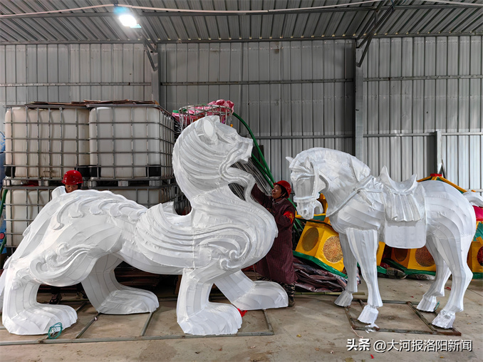 “龍驤福地”燈組將布置在隋唐城遺址植物園西門口,該燈組高10米,長20米,僅獅頭重達近2噸,非常搶眼,在燈光變換中盡顯“國潮”風(fēng)韻,目前骨架已制作完成,接下來將進入到裱糊階段。