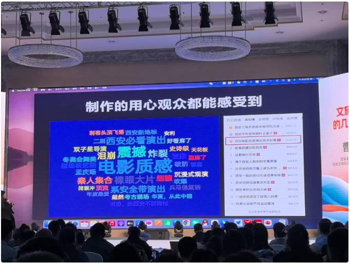 聚焦旅游演藝,大會分享城市敘事表達新鮮案例,還開啟“頭腦風暴”探索“生態(tài)與破圈”——騰訊公司數(shù)字輿情部聚焦文旅消費態(tài)勢進行特點分析,摩登天空分享草莓音樂節(jié)的“文商旅”融合聯(lián)動,阿那亞國際文化公司講述怎樣用戲劇內容的深度融入改變一座城,呈現(xiàn)旅游演藝跨界合作的多個示范樣本。