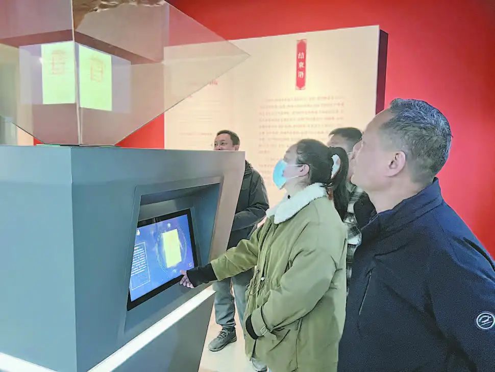 游客體驗(yàn)市博物館全息投影。(焦作市博物館供圖)