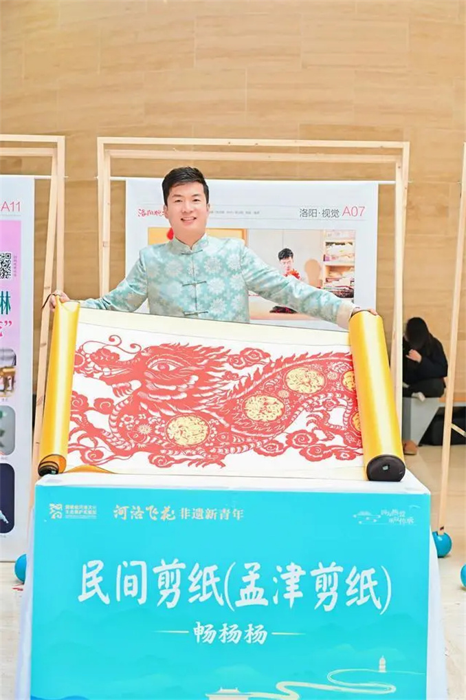 一把剪刀、一張紅紙就能講述非遺故事。在定鼎門遺址博物館二樓展廳中,“河洛飛花”2024國家級河洛文化生態(tài)保護(hù)實驗區(qū)建設(shè)成果展整齊陳列,從九曲黃河文明之源開始,到非遺文化與現(xiàn)代生活的完美融合,細(xì)述洛陽“成果”。