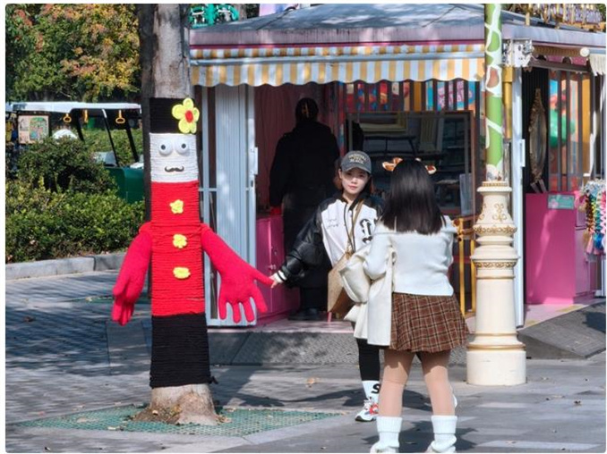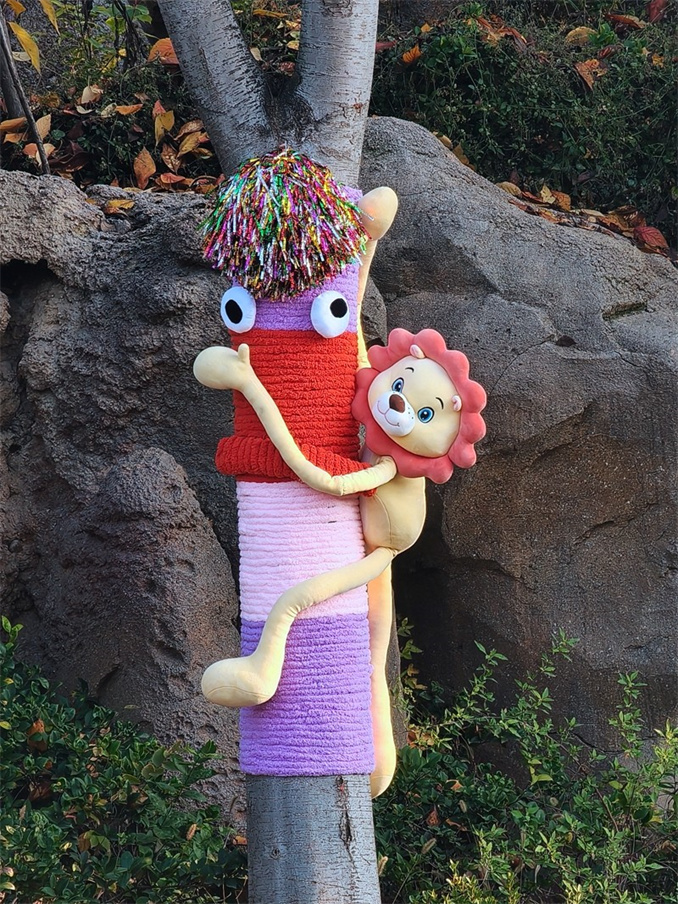 記者發(fā)現(xiàn),在銀基動物王國入口的“佳寶小鎮(zhèn)”街道上,形態(tài)各異的“毛絨樹衣”已經(jīng)包裹在樹干上,佳寶小鎮(zhèn)的主干道變成了“毛絨精靈”的迎賓場,來往行人紛紛與“樹衣”拉手拍照,新場景、新互動讓原本無人問津的樹干變得“門庭若市”,吸引著游客駐足打卡。