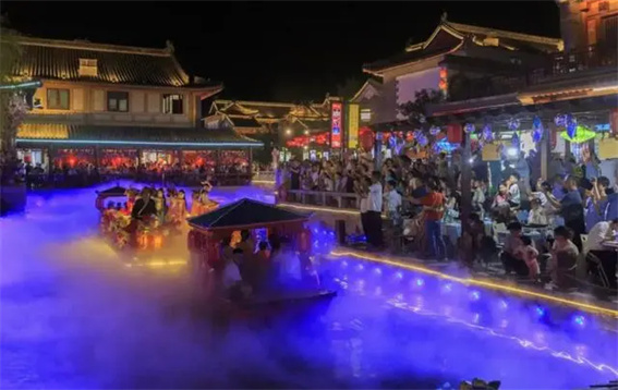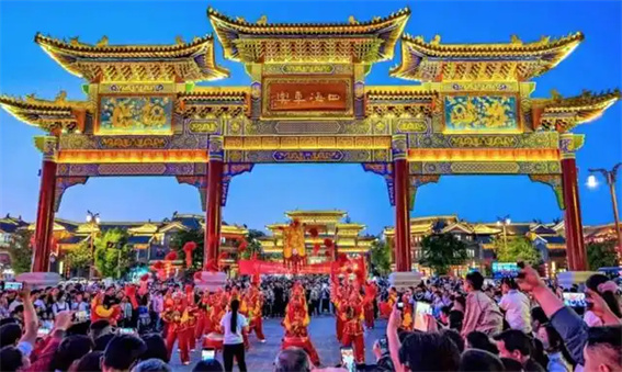 在皇家驛站可以領(lǐng)略到“陸驛”“水驛”等多條特色主題游線,各條游線上地方風(fēng)味美食無(wú)處不在,品種繁多;傳統(tǒng)文化非遺表演,品味之余驚嘆不已;名優(yōu)特產(chǎn)旅游商品,目光所至琳瑯滿目;古裝演藝國(guó)潮表演,穿越古今流連忘返;“時(shí)光驛巷”感受天中味道,駐馬店記憶;此外,還有多種新奇特場(chǎng)景展館,吸引無(wú)數(shù)游客爭(zhēng)相前來(lái)。夜幕降臨,華燈初上,一座與白日截然不同的“鎏金不夜城”將游人們帶回?cái)?shù)百年前的明代盛世。換上漢服,在皇家驛站來(lái)一場(chǎng)“如夢(mèng)如幻”的穿越之旅。歌舞聲起,古典麗人們翩翩起舞;皇家威儀,崇簡(jiǎn)王率儀仗隊(duì)沿街巡視“民情”;運(yùn)河水依依,“英臺(tái)小姐姐”泛舟而來(lái);篝火熊熊,最原始的快樂(lè)點(diǎn)燃了每個(gè)人心底的熱情。