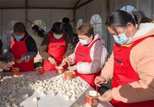 千人餃子宴香氣四溢。俗話說:“冬至餃子夏至面”。冬至這天,餃子可少不了;顒蝇F(xiàn)場,千人餃子宴成為了最熱鬧的環(huán)節(jié)。市民們圍在一起,你搟皮兒來我包餡,偌大的鐵鍋里,餃子翻滾,熱氣騰騰,香氣四溢,大伙兒都迫不及待地在舌尖上品味濃香的餃子,共同感受這份冬至的溫暖與快樂。