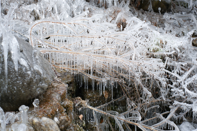 進入12月中下旬,太行大峽谷的溪流、飛瀑、草叢等景觀或凝固成冰,或被冰雪所覆蓋,幻化成白色的“童話仙境”,引人入勝!