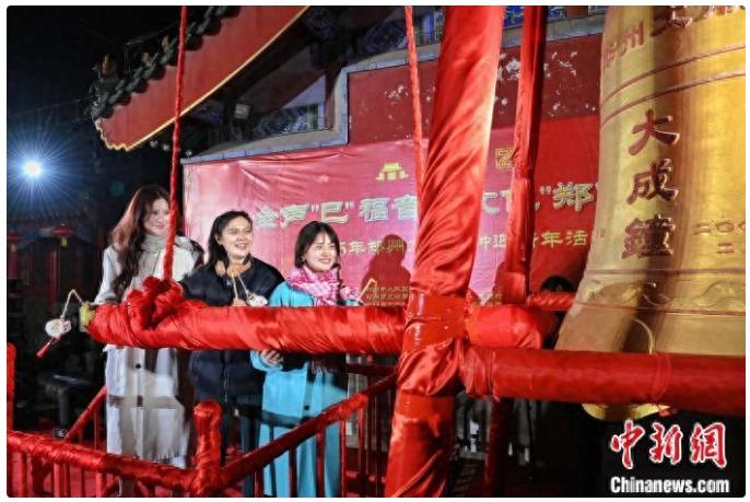 北京時間1月1日零時,河南鄭州文廟大成鐘如約鳴響,人們接力撞鐘祈福,迎接2025年的到來。在這座有著1900多年歷史的文廟里跨年,已成為很多鄭州市民迎接新年的方式。