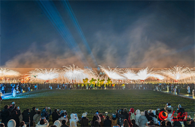 “火樹銀花落,萬點星辰開”。2025年1月1日零時,河南鄭州只有河南·戲劇幻城內(nèi),非遺打鐵花表演璀璨上演,為游客帶來了一場震撼的視覺盛宴。40個打鐵花點位上,熾熱的鐵水在夜空中化作萬點星光,游客們紛紛拿出手機記錄下這一難忘瞬間。 只有河南·戲劇幻城內(nèi),非遺打鐵花表演璀璨上演,為游客帶來了一場震撼的視覺盛宴。人民網(wǎng) 宋芳鑫攝