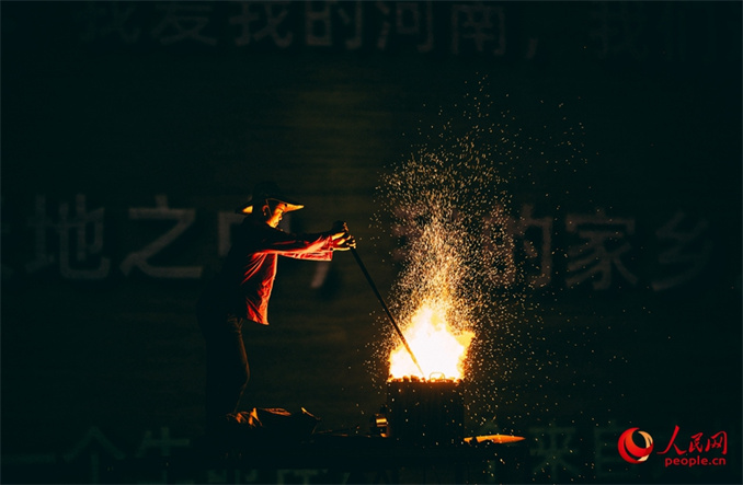 熾熱的鐵水在夜空中化作萬點星光。孫夢瑤攝