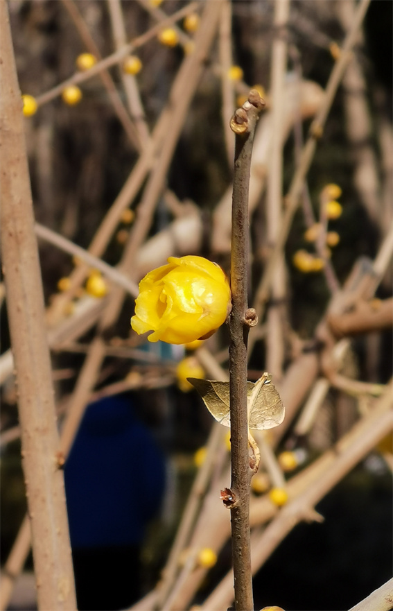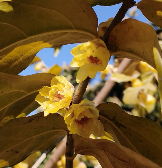 特別值得一提的是,綠蔭公園有18株素心蠟梅,為蠟梅中最寶貴的品種。其花色純黃,濃香撲鼻,凌霜傲雪,迎寒綻放,花黃似蠟,其香味有幾分似茉莉,又帶些沉香的氣息。