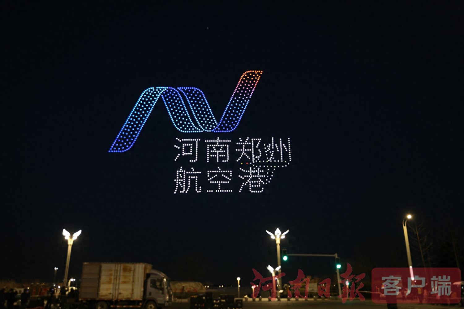 1月8日18時(shí),1000架無人機(jī)匯聚鄭州航空港經(jīng)濟(jì)綜合實(shí)驗(yàn)區(qū)雙鶴湖中央上空,以夜空為幕,以燈光為“舞”,點(diǎn)亮“空中絲綢之路”。