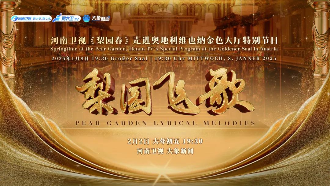 歲序更替,山河日新。維也納當?shù)貢r間2025年1月8日19:30,當黃河之濱的梨園雅韻在奧地利維也納金色大廳的穹頂之下悠然回蕩,一場跨越時空與地域的文化盛宴——“梨園飛歌”河南衛(wèi)視《梨園春》走進奧地利維也納金色大廳特別節(jié)目,為中歐文化交流添上了濃墨重彩的一筆。