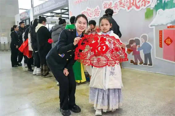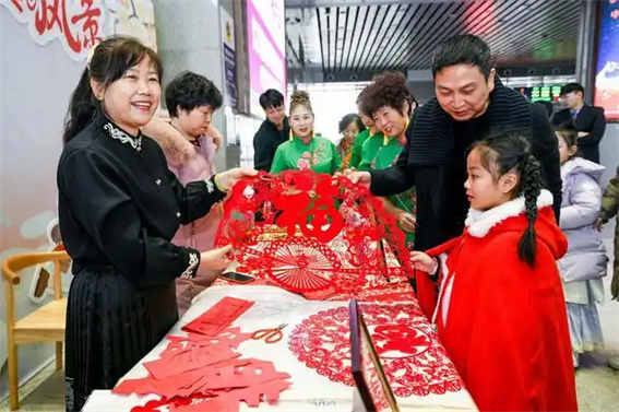 在洛陽龍門站的候車室里,旅客們不僅可以欣賞精美的剪紙作品,還可以在剪紙藝術(shù)家的指導(dǎo)下,體驗(yàn)剪紙藝術(shù)的樂趣,把親手制作的剪紙作品帶回家,把新年的美好祝愿帶回家。