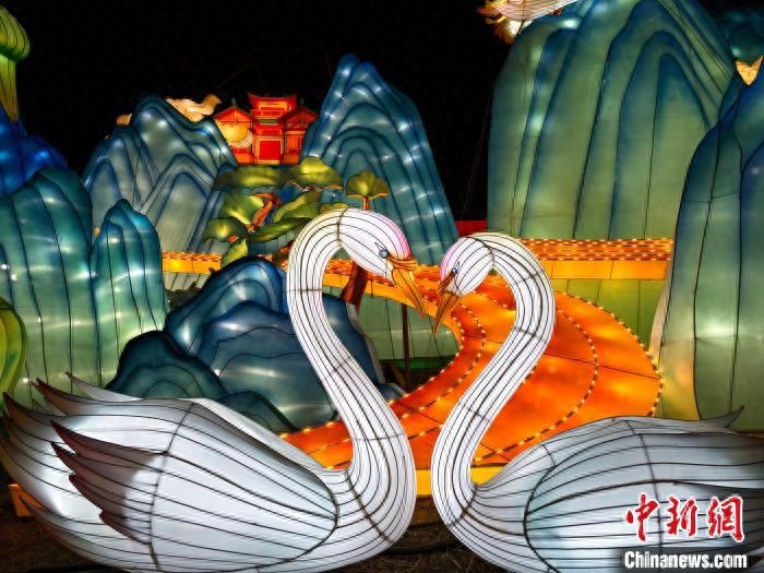 圖為“天鵝”造型的彩燈。王玉璞 攝