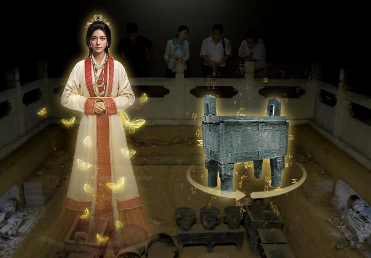 意猶未盡的話,大家還可以來(lái)到婦好墓展廳體驗(yàn)另一款XR項(xiàng)目,戴上設(shè)備,華夏第一位女將軍婦好將來(lái)到你身邊,為您娓娓道來(lái)這里的故事、介紹一件件珍寶文物。