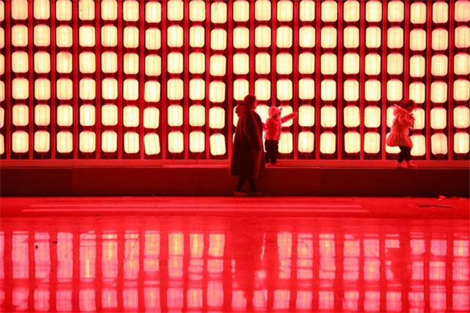 游客在溫縣陳家溝景區(qū)賞花燈。