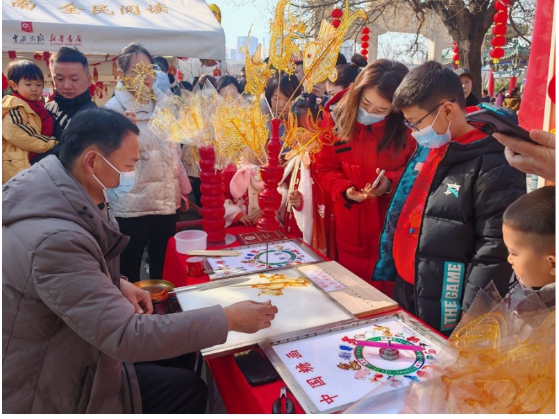 當(dāng)非遺遇上文廟,一場關(guān)于傳統(tǒng)文化的奇妙之旅即將開啟。在鄭州文廟前廣場,蛋雕、面塑、吹糖人、核雕、葫蘆烙畫等二十項展示非遺傳統(tǒng)技藝的攤位一字排開,熱鬧非凡。隨著糖畫手藝人干脆利落的彈轉(zhuǎn)提拉,圍觀群眾禁不住連連贊嘆,年味十足。一個個非遺小帳篷佇立在文廟的紅墻綠瓦之下,見證著中華優(yōu)秀傳統(tǒng)文化的薪火相傳,照亮鄭州市民內(nèi)心的文化自信。