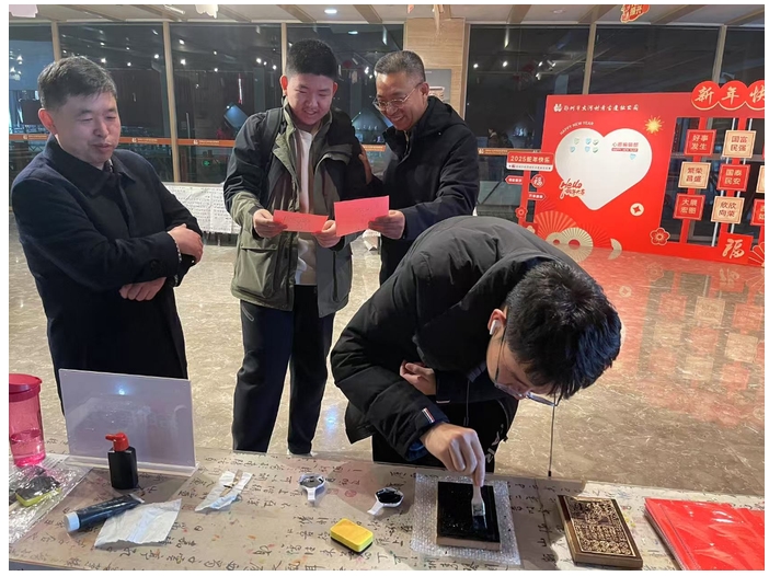 此外,博物館還精心打造了一個(gè)豐富多彩的活動(dòng)市集。在拓印壓歲錢區(qū)域,游客們可以親手體驗(yàn)傳統(tǒng)的拓印技藝,將寓意吉祥的圖案拓印在特制的紙張上,制作出獨(dú)一無二的“壓歲錢”,感受傳統(tǒng)文化的韻味。榫卯小游戲挑戰(zhàn)賽吸引了眾多親子家庭參與,大家齊心協(xié)力,通過拼接榫卯結(jié)構(gòu),不僅鍛煉了空間思維能力,還深入了解了中國(guó)傳統(tǒng)建筑的智慧。心愿編輯部里,游客們紛紛寫下自己對(duì)新一年的美好期許,為新年祈福。書法寫“福”字區(qū)域,游客們親自書寫寓意吉祥的“福”字......