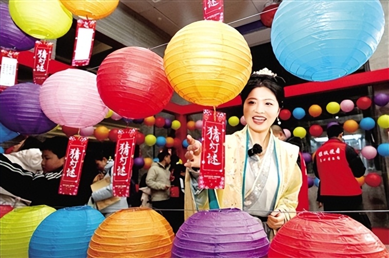 下午3點,鄭州商代都城遺址博物院北大廳已有序地排滿了等待參與元宵趣味挑戰(zhàn)的游客。驚喜的是,不少游客身著漢服,國風氣息撲面而來。博物院一樓走廊上,懸掛了百余張字謎,游客們穿梭其中,紛紛凝神思索,激動地答出謎底。