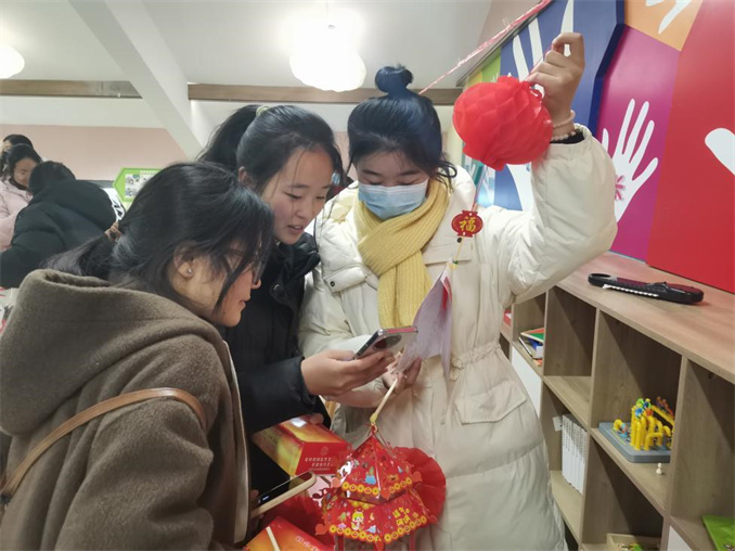 小朋友現(xiàn)場制作手工燈籠。禹王臺(tái)區(qū)委宣傳部供圖