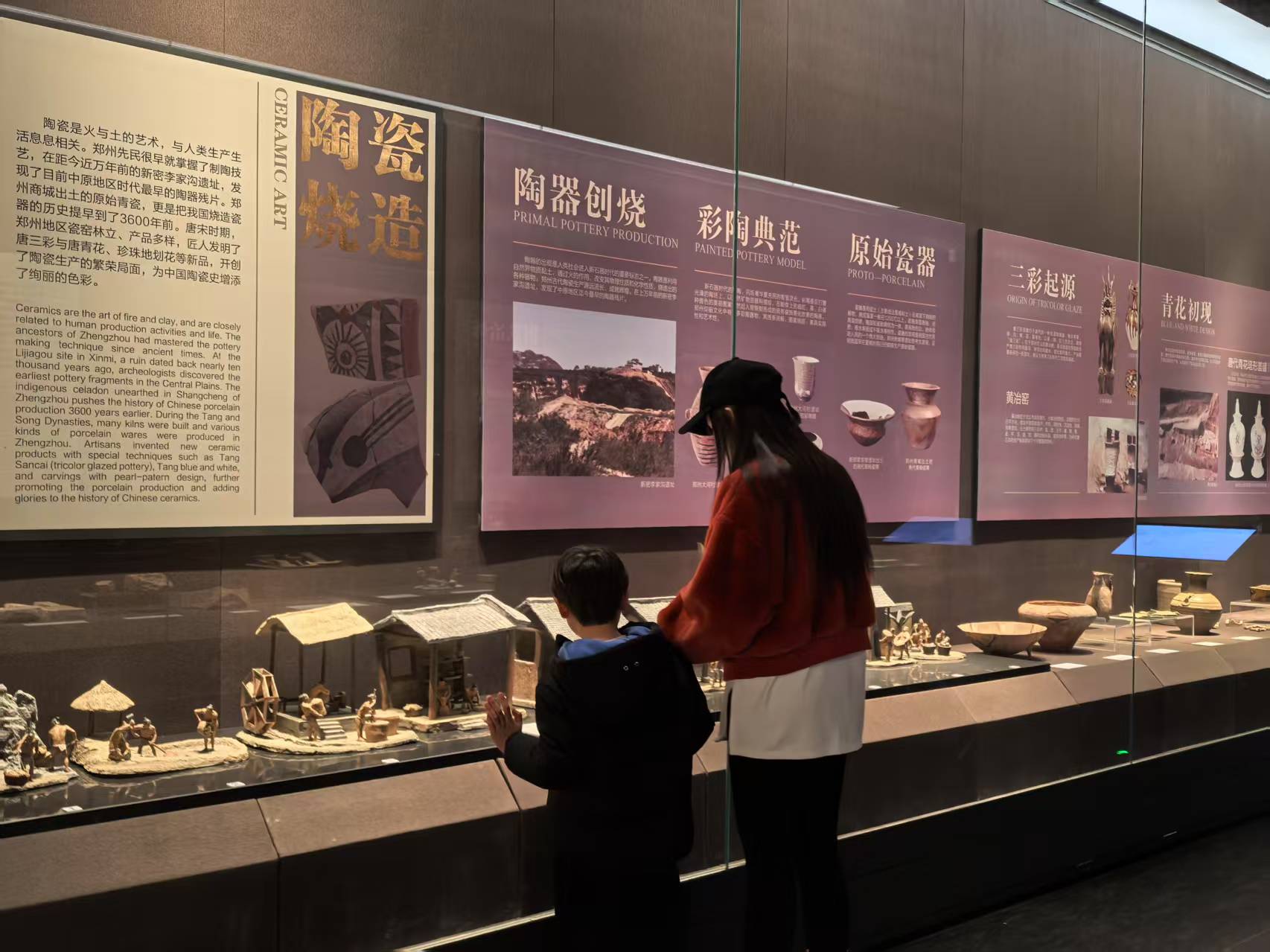 來(lái)自陜西的游客白川游走于開(kāi)放的各大展廳,追尋“中原象蹤”、欣賞“漢磚意韻”。在“天地之中”展館,中國(guó)古代國(guó)家級(jí)禮制建筑典范漢三闕、中國(guó)現(xiàn)存最古老的天文臺(tái)觀星臺(tái)等復(fù)制模型,引起他濃厚的興趣,“第一次來(lái)鄭州,探親游玩中偶然得知這里的夜游活動(dòng)。尤其是夜間逛展,漫步于博物館,從‘天地之中’建筑群感受商都鄭州的悠久歷史與深厚底蘊(yùn),體驗(yàn)感很棒。”白川連連稱贊。