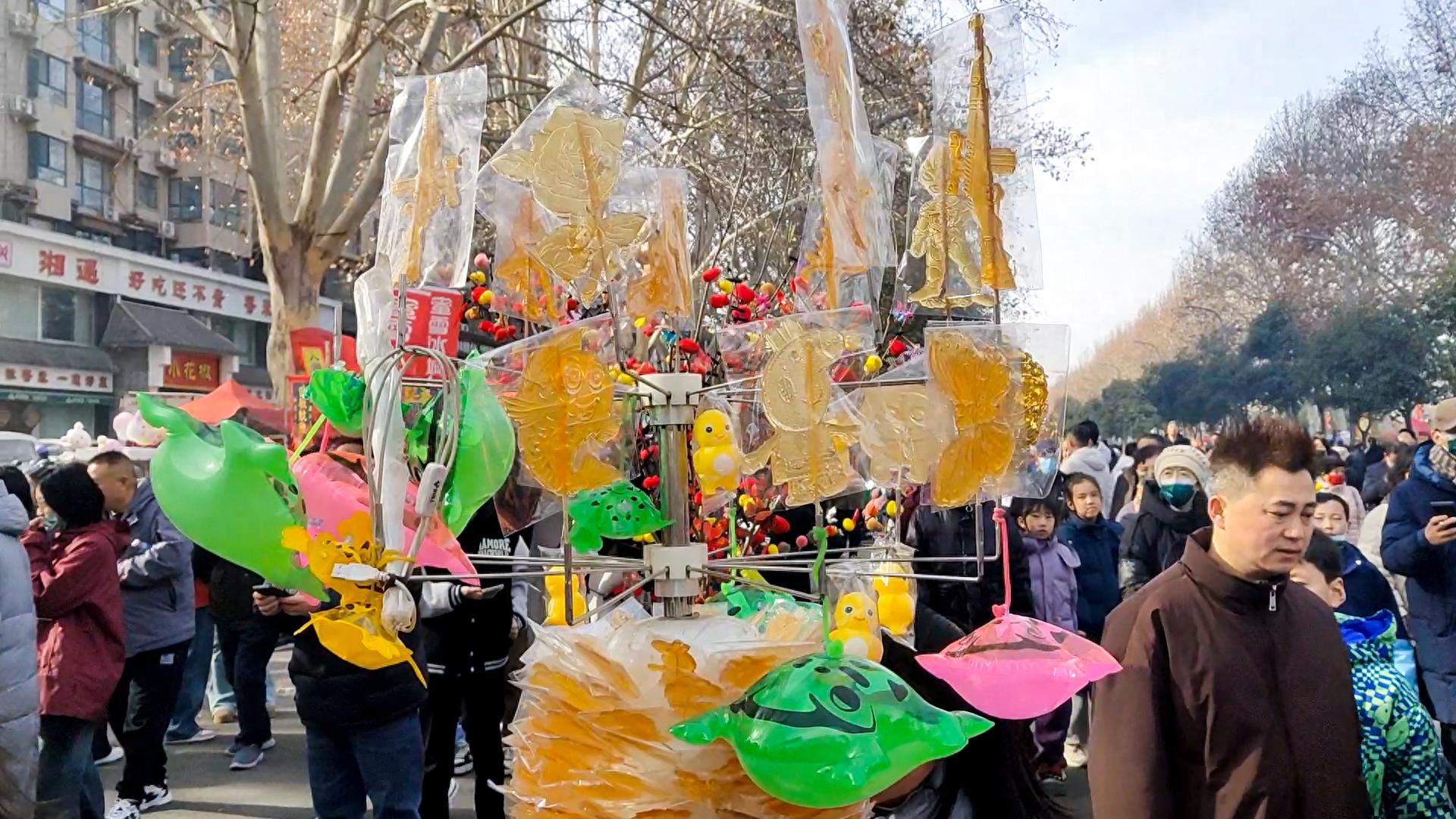 廟會(huì)上,旋轉(zhuǎn)的風(fēng)車、撥浪鼓等手工藝品琳瑯滿目,大塊兒炸血糕、煎灌腸等民間小吃香味撲鼻,泥咕咕、糖畫等非物質(zhì)文化遺產(chǎn)讓人們直觀感受傳統(tǒng)文化的無限魅力。