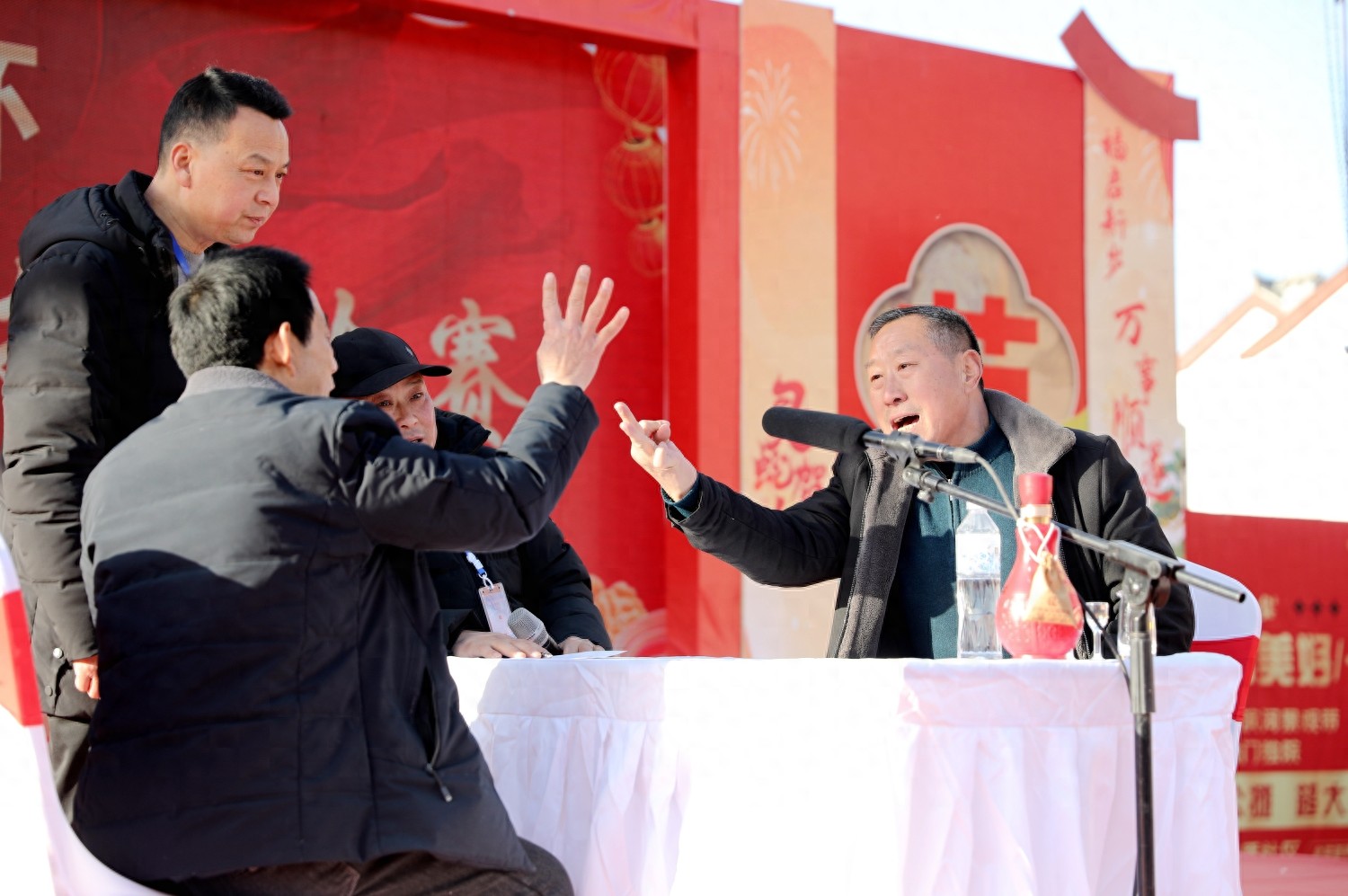 杯中日月長(zhǎng),枚間天地寬。猜枚技藝作為中原地區(qū)歷史悠久的行酒令形式,承載著“酒禮相和”的文化基因,選手們?cè)?ldquo;五魁首”“六六順”等韻律口令中,通過手指變化展開心智較量,既考驗(yàn)反應(yīng)速度,更講究禮儀分寸。