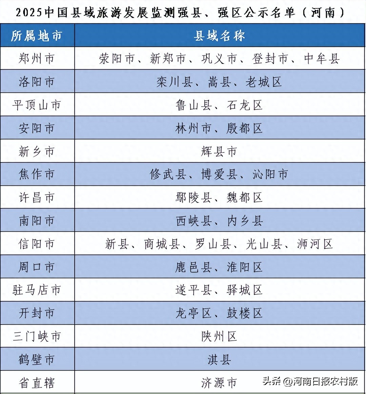 2月10日,2025(第八屆)中國縣域旅游發(fā)展監(jiān)測強縣、強區(qū)名單公示(河南)。河南省納入2025(第八屆)中國縣域旅游發(fā)展監(jiān)測的強縣共24個、強區(qū)10個,占全省縣級行政單位總數(shù)的22%。新鄉(xiāng)僅有輝縣市入選。