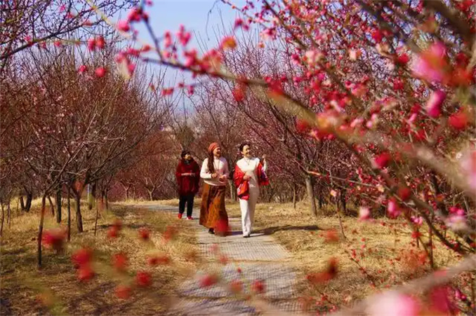 塔子山梅花基地的梅花陸續(xù)綻放,成為春日一道美景,吸引不少游客前來游園賞梅。(張峰 攝)