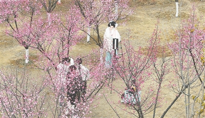 西流湖公園1600余株梅花競放,圖為游客在梅林中拍攝寫真 本報記者 馬健 攝