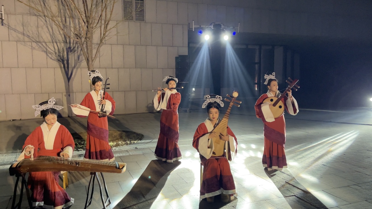博物館東角樓的真人3D視覺(jué)秀別出心裁,三弦、古琴與DJ的混搭,利用折角視錯(cuò)覺(jué)帶來(lái)電音與民樂(lè)碰撞的潮音盛宴;東側(cè)的國(guó)家級(jí)非物質(zhì)文化遺產(chǎn)表演永城火老虎,熊熊火焰間,傳承著古老的技藝與文化。東門(mén)甬道的“商博好市·潮品煥新”老字號(hào)&非遺潮物市集熱鬧非凡,融入李杜相會(huì)、桃花扇、非遺技藝場(chǎng)景表演,讓大家觀賞的同時(shí),感受傳統(tǒng)文化的魅力。