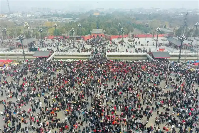 會(huì)期之長(zhǎng),人數(shù)之多,歷史之久,“淮陽(yáng)太昊陵古廟會(huì)”的人文魅力在文旅融合時(shí)代背景下愈加凸顯。幾乎每一年的二月初二這天,都有至少10萬(wàn)人到太昊陵祭拜逛會(huì)。游客們來(lái)自天南海北,說(shuō)著不同的方言或者帶有方言味道的普通話。他們懷著對(duì)祖先的崇拜之心,參觀游覽太昊陵,近距離感受著中華文明的深厚底蘊(yùn)。