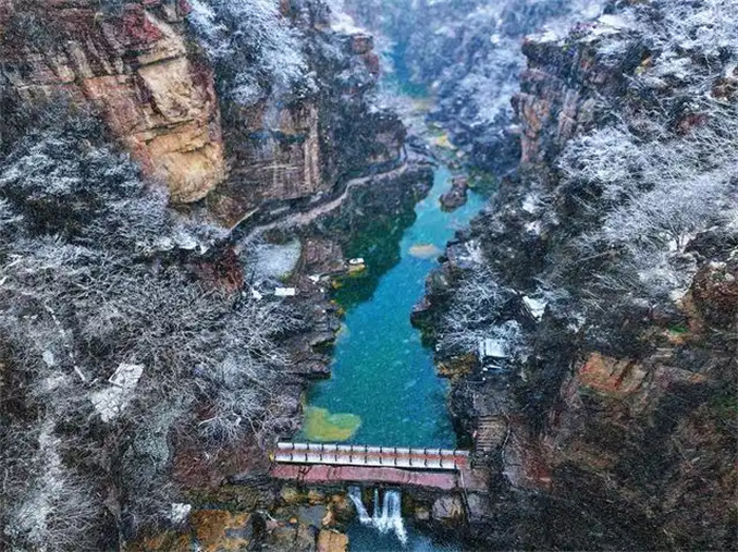 紅石峽里,白雪與紅巖交相輝映,展現(xiàn)出別樣的風(fēng)情與韻味;云臺(tái)之巔,俯瞰云海起伏,山間云霧隨氣流急速涌動(dòng),變化萬(wàn)千,登高望遠(yuǎn)觀云海,遇見(jiàn)王維詩(shī)里的云臺(tái)山。