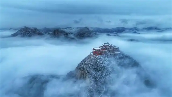 3月3日,云臺(tái)山景區(qū)迎來(lái)春雪,紛紛揚(yáng)揚(yáng)的雪花為山巒披上銀裝,云海翻涌與奇峰怪石相映成趣,把云臺(tái)山裝扮成了一幅詩(shī)意無(wú)限的水墨畫(huà)卷。