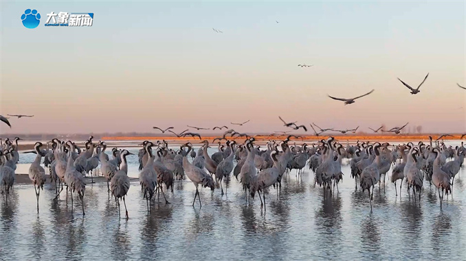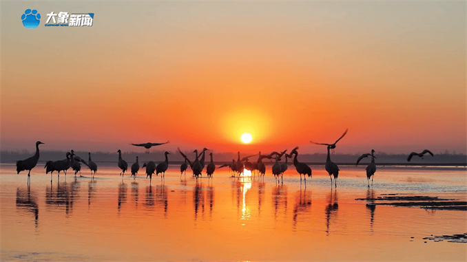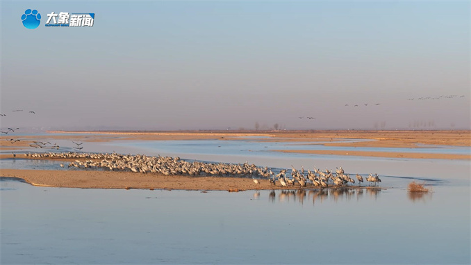 隨著天氣逐漸轉(zhuǎn)暖,驚蟄前后,位于黃河新鄉(xiāng)封丘段的封丘黃河濕地鳥(niǎo)類國(guó)家級(jí)自然保護(hù)區(qū),近千只灰鶴在廣闊的濕地灘涂上棲息,為即將到來(lái)的北遷之旅積蓄能量。這群 "濕地精靈" 舒展著流線型羽翼,或優(yōu)雅踱步,或展翅高飛,與初春的暖陽(yáng)和波光粼粼的水面構(gòu)成一幅生機(jī)勃勃的生態(tài)畫(huà)卷,這群灰鶴將在完成越冬修整后集群?jiǎn)⒊,振翅北飛。