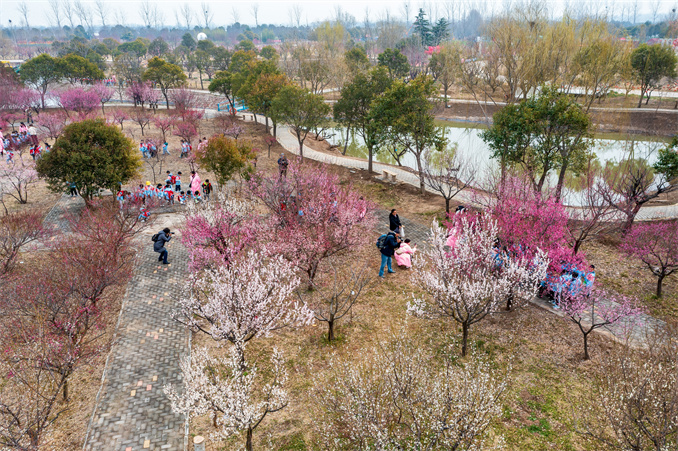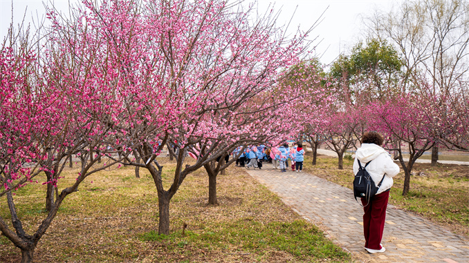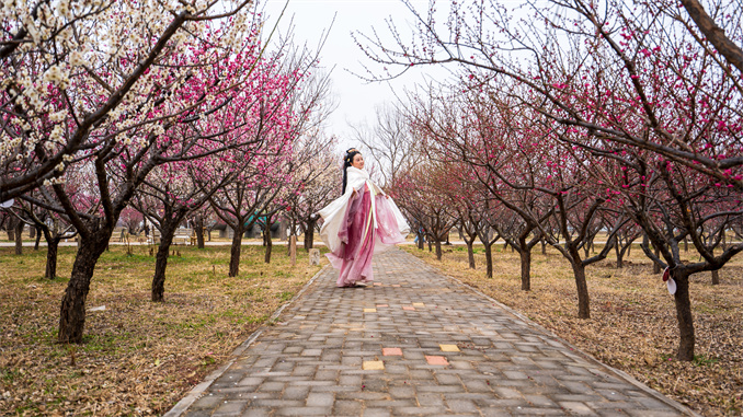 張山告訴記者,由于氣溫較往年偏高,現(xiàn)在園區(qū)已經(jīng)進(jìn)入盛花期,園區(qū)栽培的梅花分早花、中花、晚花品種,賞梅從2月底可以一直持續(xù)到4月初。行走在黃河梅園,梅香陣陣撲鼻而來(lái)。不時(shí)遇見(jiàn)身穿漢服的小姐姐拍照打卡。
