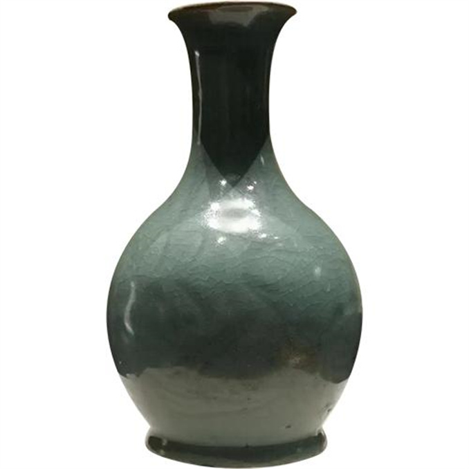 汝窯天藍(lán)釉刻花鵝頸瓶