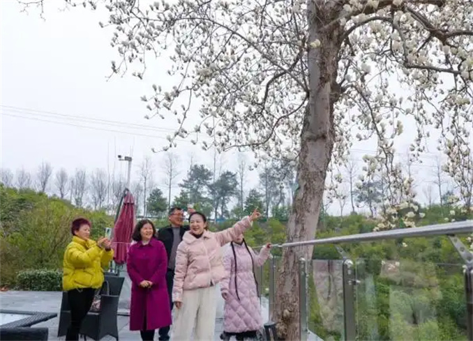 3月9日,春風(fēng)輕拂。位于光山縣司馬光油茶園的白蘭茶舍院內(nèi)和周邊的玉蘭花嬌艷嫵媚,吸引了眾多游客前來(lái)。白蘭茶舍院內(nèi)的兩棵玉蘭樹(shù)栽植于20世紀(jì)60年代末,樹(shù)齡已超過(guò)50年。2022年,司馬光油茶園景區(qū)將原槐店鄉(xiāng)晏崗村林場(chǎng)的護(hù)林房改建為白蘭茶舍,為游客提供游玩、觀景、賞花的休憩場(chǎng)所。同時(shí),茶舍周邊的道路和水塘旁栽植了新的玉蘭樹(shù),今年已進(jìn)入盛花期,成為園區(qū)的新亮點(diǎn)。