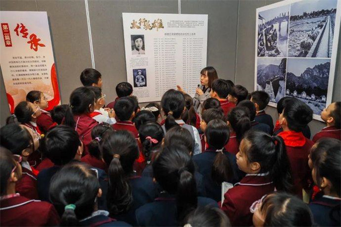 展覽現(xiàn)場(chǎng),河南省文化館授牌的青少年美育基地部分師生也來到現(xiàn)場(chǎng),通過觀展,對(duì)前輩“自力更生、艱苦創(chuàng)業(yè)、團(tuán)結(jié)協(xié)作、無私奉獻(xiàn)”的“紅旗渠精神”有了更深刻的了解。